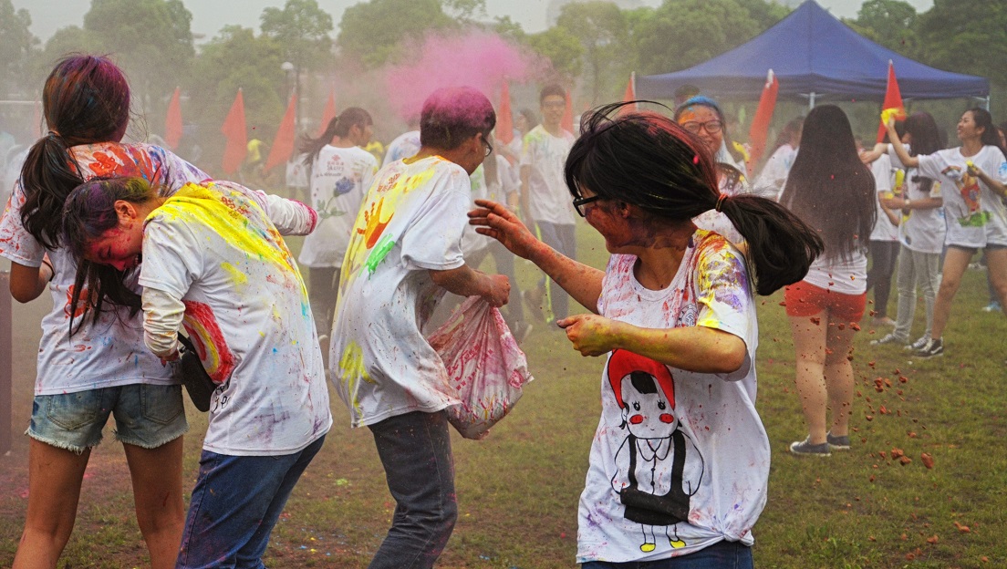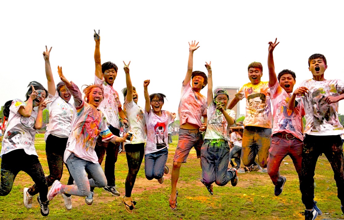师生一同进行“彩色跑”