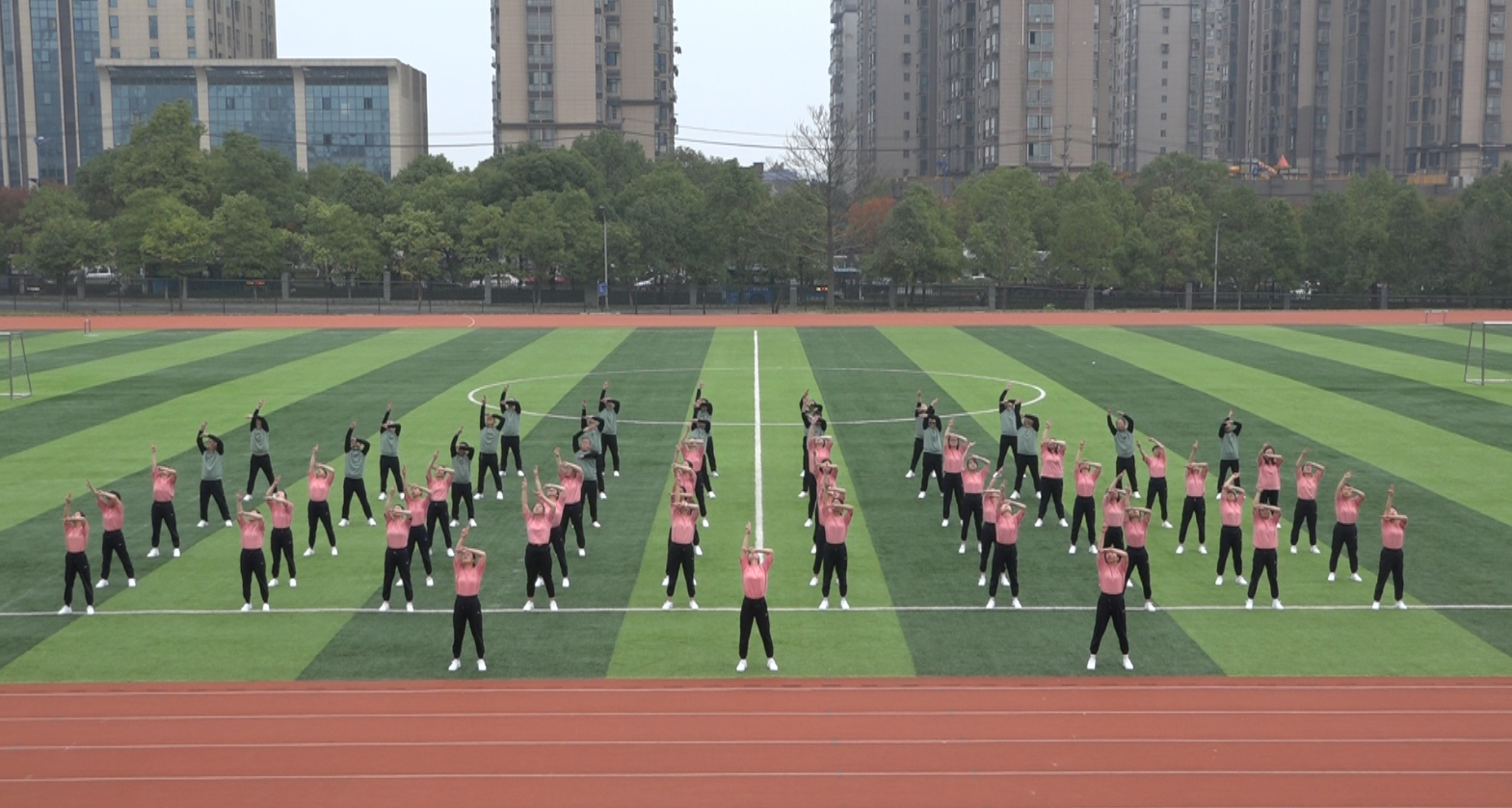 本网讯(通讯员 周敏)为推动全员健身活动的深入开展,活跃教职工业余文化生活,展示教职员工积极向上、团结协作的精神风貌。2021年10月27-29日,我校2021年“全员健身,活力城院”教职工第十套广播体操比赛在东田径场举行,全校20个分工会组成的16支代表队共六百余人参加了比赛。